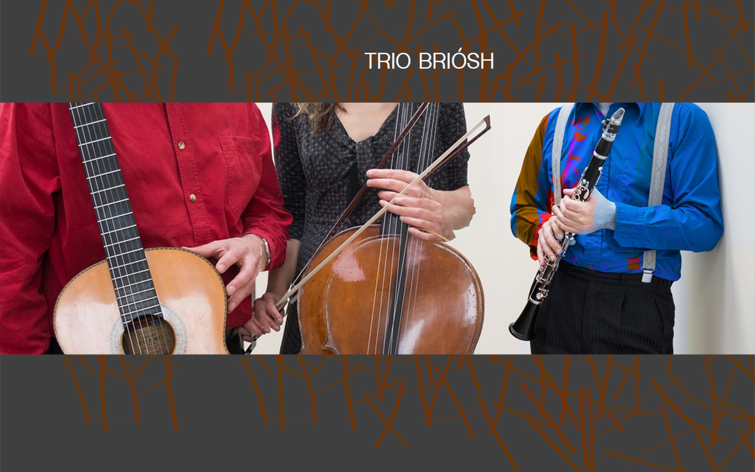 Trio Briósh spielt Musik von Astor Piazzolla, Django Reinhardt, Giora Feidmann, Toni Murena, Nino Rota, Charlie Chaplin, Dmitri Shostakovitsch, Jean Françaix und ein weites traditionelles Repertoire von Osteuropa bis Tango und Musette sowie anspielungsreiche Eigenkompositionen.